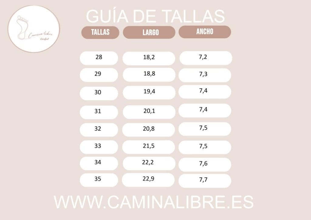 | Talla | Largo (cm) | Ancho (cm) | Tipo |